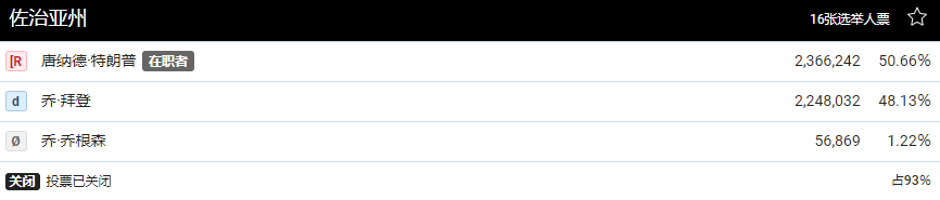 佐治亞(ya) 州:特朗普領先(勝選+16)