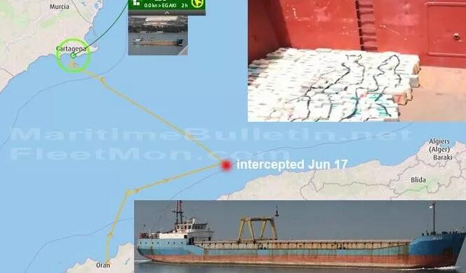 一艘貨船ELG於(yu) 當地時間6月17日(周一)下午在阿爾及利亞(ya) 奧蘭(lan) 的地中海東(dong) 北部出發時被截獲。西班牙禁毒執法機構在船上發現了350包,大約10噸的大麻。