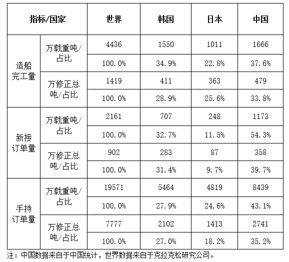 1~5月,我國造船完工量、新接訂單量、手持訂單量分別占世界市場份額的37.6%、54.3%和43.1%。