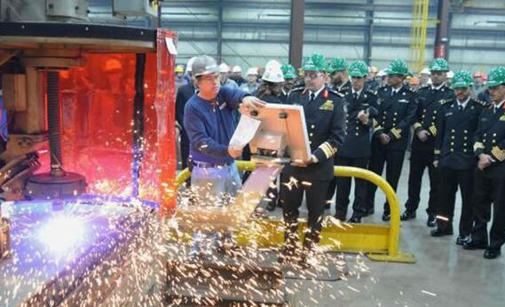 美軍(jun) 為(wei) 沙特阿拉伯海軍(jun) 製造的首艘“多任務水麵戰鬥艦”鋼板切割儀(yi) 式(資料圖)