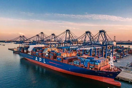 圖為(wei) 天津港大型集裝箱船舶。(資料圖)中新社發 薄承 攝