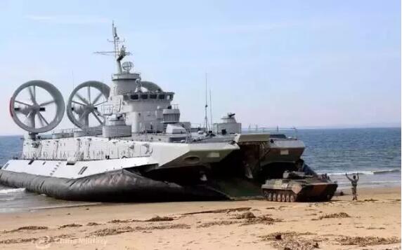 野牛級大型氣墊登陸艦是蘇聯在八十年代為(wei) 了適應歐洲多海灣內(nei) 海環境而定製的一款搶灘登陸神器,排水量高達550噸,航程超過300海裏,運載量150噸,速度可以超過60節,一次能夠運送3艘50噸級的主戰坦克和隨行的140名裝甲步兵,野牛上裝備有兩(liang) 門二十二聯裝140毫米多管火箭發射器和兩(liang) 門AK630速射炮,對簡易岸防工事的火力壓製絕對屬於(yu) 犁地級別的。如果是橫渡英吉利海峽這樣隻有34公裏的狹小海區,野牛級的速度基本上半個(ge) 小時就可以從(cong) 法國海灘殺上英倫(lun) 三島,可謂防不勝防!