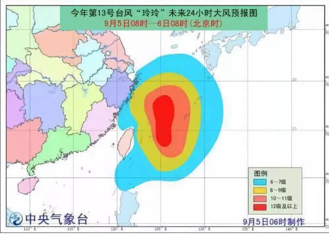 今年第13號台風“玲玲”已於(yu) 今天(5日,下同)早晨加強為(wei) 強台風級,早晨5點鍾其中心位於(yu) 台灣省宜蘭(lan) 市東(dong) 偏南375公裏的台灣以東(dong) 洋麵上,就是北緯23.8度、東(dong) 經125.3度,中心附近最大風力有14級(45米/秒),中心最低氣壓為(wei) 950百帕,七級風圈半徑260~300公裏,十級風圈半徑150公裏,十二級風圈半徑50~70公裏。