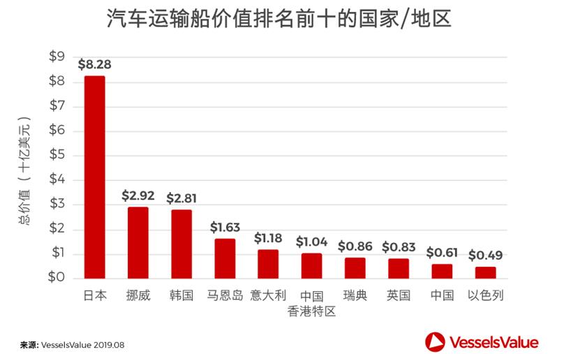 根據VV的數據,日本的汽車運輸船隊價(jia) 值全球最高,但這並不令人驚奇,我們(men) 已經在前文進行了討論。也許更有趣的一點是,挪威排名第二,其船隊價(jia) 值接近30億(yi) 美元。