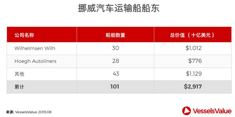 兩(liang) 家挪威船東(dong) Wilhelmsen和Hoegh Autoliners的汽車運輸船隊總資產(chan) 將近20億(yi) 美元,占該國該船隊總價(jia) 值近60%的份額。