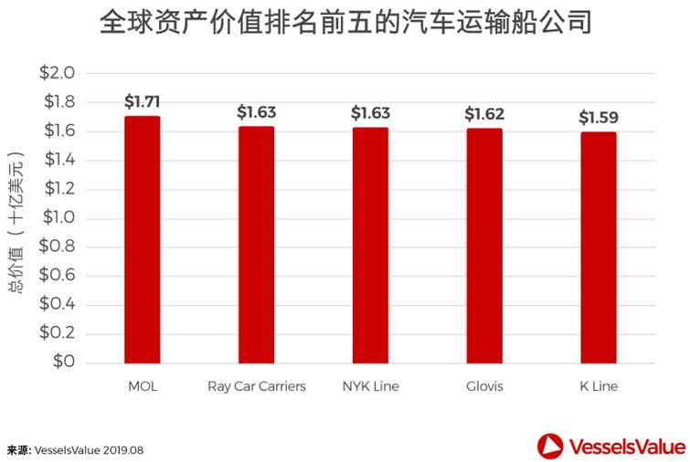 下表顯示了目前全球範圍內(nei) ,資產(chan) 價(jia) 值排名前五的汽車運輸船隊。