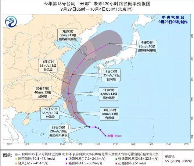2019年第18號台風“米娜”今天(29日)早晨由熱帶風暴級加強為(wei) 強熱帶風暴級,早晨5點鍾其中心位於(yu) 台灣省台北市東(dong) 南方約980公裏的西北太平洋洋麵上,中心附近最大風力有10級(28米/秒),中心最低氣壓為(wei) 982百帕。