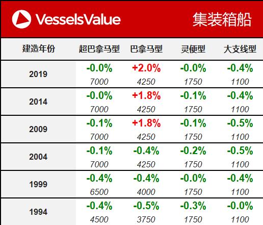 本周船齡較小的巴拿馬型集裝箱船價(jia) 格上漲。