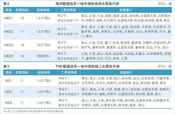 二季度,海洋聯盟下四大服務均受影響,其中配置運力稍低的MED5削減4個(ge) 班期,MED2削減3個(ge) 班期,MED1和MED3分別削減2個(ge) 班期。