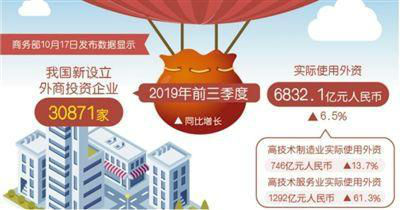 從(cong) 規模與(yu) 增速看,我國利用外資持續穩定增長。前三季度,我國新設立外商投資企業(ye) 30871家,實際使用外資6832.1億(yi) 元,同比增長6.5%。