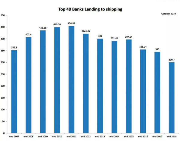 近日,希臘Petrofin Research公布的最新銀行年度調查數據顯示,全球排名前40、提供船舶融資服務的銀行在2008至2018年的融資額逐步下降,該數值在2018年處於(yu) 十餘(yu) 年來的最低水平。盡管如此,但業(ye) 內(nei) 人士認為(wei) ,Petrofin Research數據中反映的另外兩(liang) 個(ge) 現象更值得關(guan) 注,一是中資銀行提供全球船舶貸款額度占比較大,二是更多的非銀行資本為(wei) 全球船舶融資提供了大量的資金,尤其是中國的租賃公司地位逐漸凸顯。