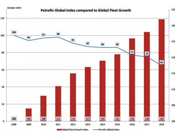 Petrofin指數與(yu) 全球船隊增長數量比較